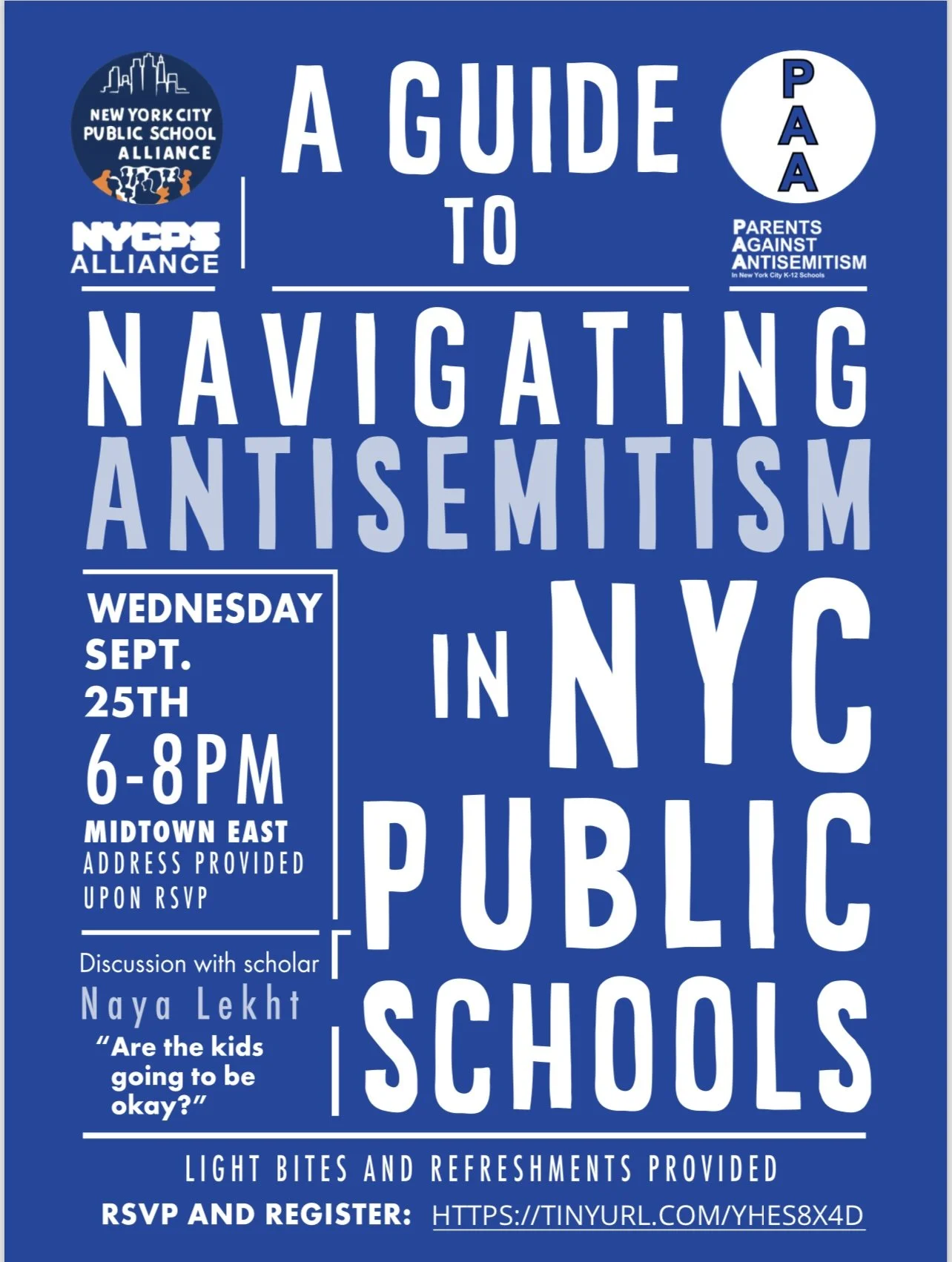 We had a great kickoff event for Parents Against Antisemitism. Thank you to our host UJA - Federation of New York, our amazing partners NYCPA Alliance and our guest speaker Dr. Naya Lekht who could have spoken for hours on end to our engaged audience.